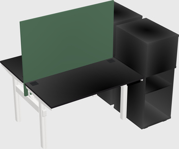 Bureaux électriques Noirs à Hauteur Réglable Et à Double Moteur Avec Armoires Latérales Pour 2 Personnes