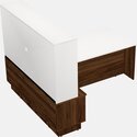 Bureau Blanc En L Avec Tiroirs Mobiles En Bois De Noyer Columbia Et Clapier En Noyer Columbia + Bras D’écran Noir (bras Simple)