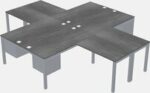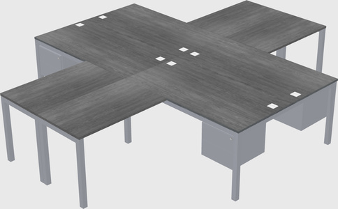 Bureau De Poste De Travail Quadruple Moderne En Forme De L – Gris