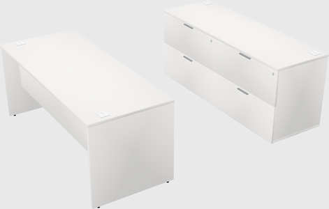 Bureau Parallèle Blanc Avec Classeur Latéral