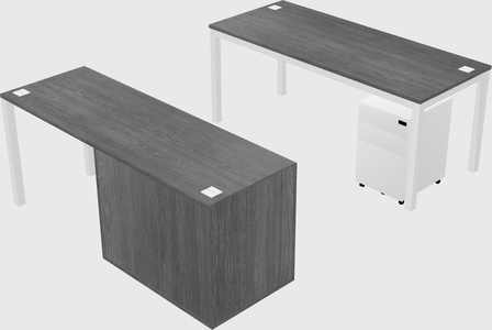 Bureau Parallèle Gris Avec Classeur + Tiroirs Mobiles
