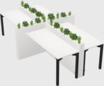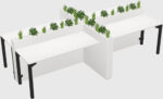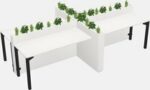 Bureau Partagé Rectangulaire Blanc Pour 4 Personnes Laissez La Nature Stimuler Votre Productivité Le Piètement Est Doté D’une étagère Réglable Pour Accueillir Des Pots (Pots Et Plantes Vendus Séparément)