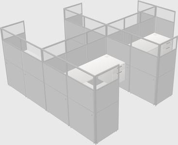 Système De Panneaux De Bureau Partagés En Forme De L Blanc Avec Tiroirs Suspendus Pour 4 Personnes