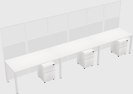 Système De Panneaux De Bureau Rectangulaires Partagés Blancs Avec Tiroirs Mobiles Pour 3 Personnes
