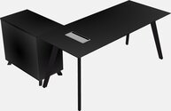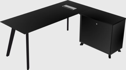 Bureau De Bureau En Forme De L Noir Avec Armoire