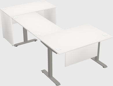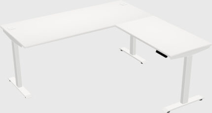Bureau électrique Blanc En L à Double Moteur, Réglable En Hauteur Avec Retour De Bureau