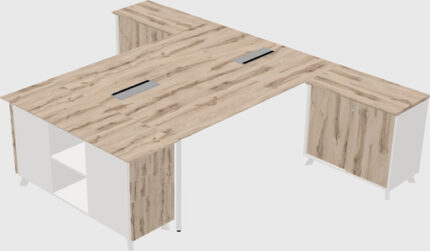Bureau Partagé En Forme De L Slick Heinne Holz + Armoire De Rangement + Retour De Bureau Pour 2 Personnes