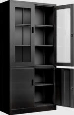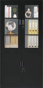 Accueil Mobilier de bureau Armoires Armoire de rangement Armoire De Rangement En Métal Avec Portes En Verre Et Métal Noir