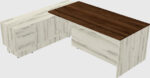 Accueil Mobilier de bureau Bureau en forme de L Bureau De Direction Moderne En Noyer Columbia Avec Armoire Basse à Portes Coulissantes Et Tiroirs Intégrés