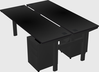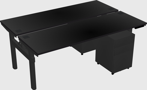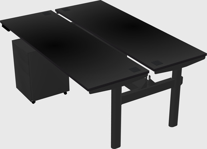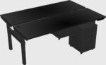 Bureaux électriques Noirs à Hauteur Réglable Et à Double Moteur Avec Armoires Latérales Pour 2 Personnes