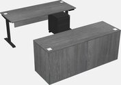 Bureau électrique Gris à Hauteur Réglable Avec Crédence, Tiroirs Mobiles En Métal Et Panneau De Fond