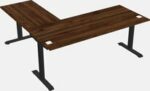 Bureau électrique En L à Double Moteur, Réglable En Hauteur Et Retour De Bureau, En Noyer Columbia