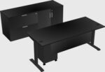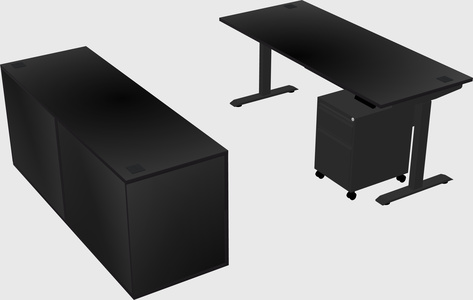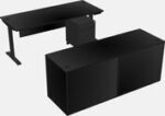 Bureaux électriques Noirs à Hauteur Réglable Et à Double Moteur Avec Armoires Latérales Pour 2 Personnes