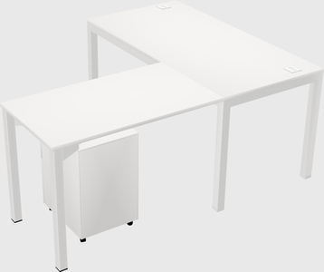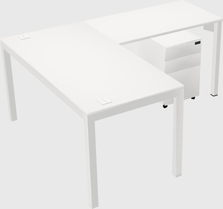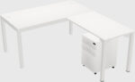 Bureau En L Blanc Avec Tiroirs Mobiles En Métal Pour 1 Personne