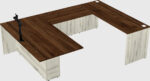 Bureau Exécutif En U + Tiroirs Mobiles En Bois + Clapier