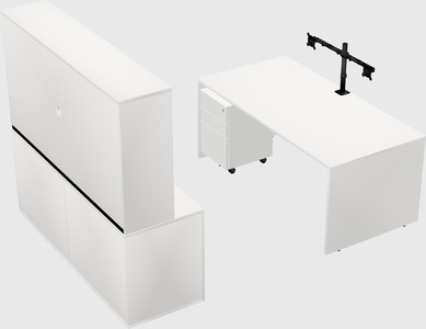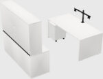Bureau Parallèle Blanc Avec Armoire De Rangement, Tiroirs Mobiles En Bois, Clapier Et Bras D'écran (bras Doubles) $0.00