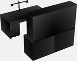 Bureau Parallèle Noir Avec Armoire De Rangement, Tiroirs Mobiles En Bois, Clapier Et Bras D’écran (bras Doubles)