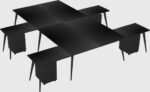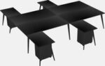 Bureau Partagé En L Noir Avec Tiroirs Mobiles En Métal