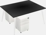 Accueil Mobilier de bureau Bureau Rectangulaire Bureau Rectangulaire Partagé Noir Avec Tiroirs Mobiles En Métal
