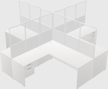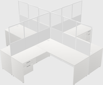 Tiroirs Suspendus Pour Cabines De Bureau Quadruples En Forme De L Blanches $0.00